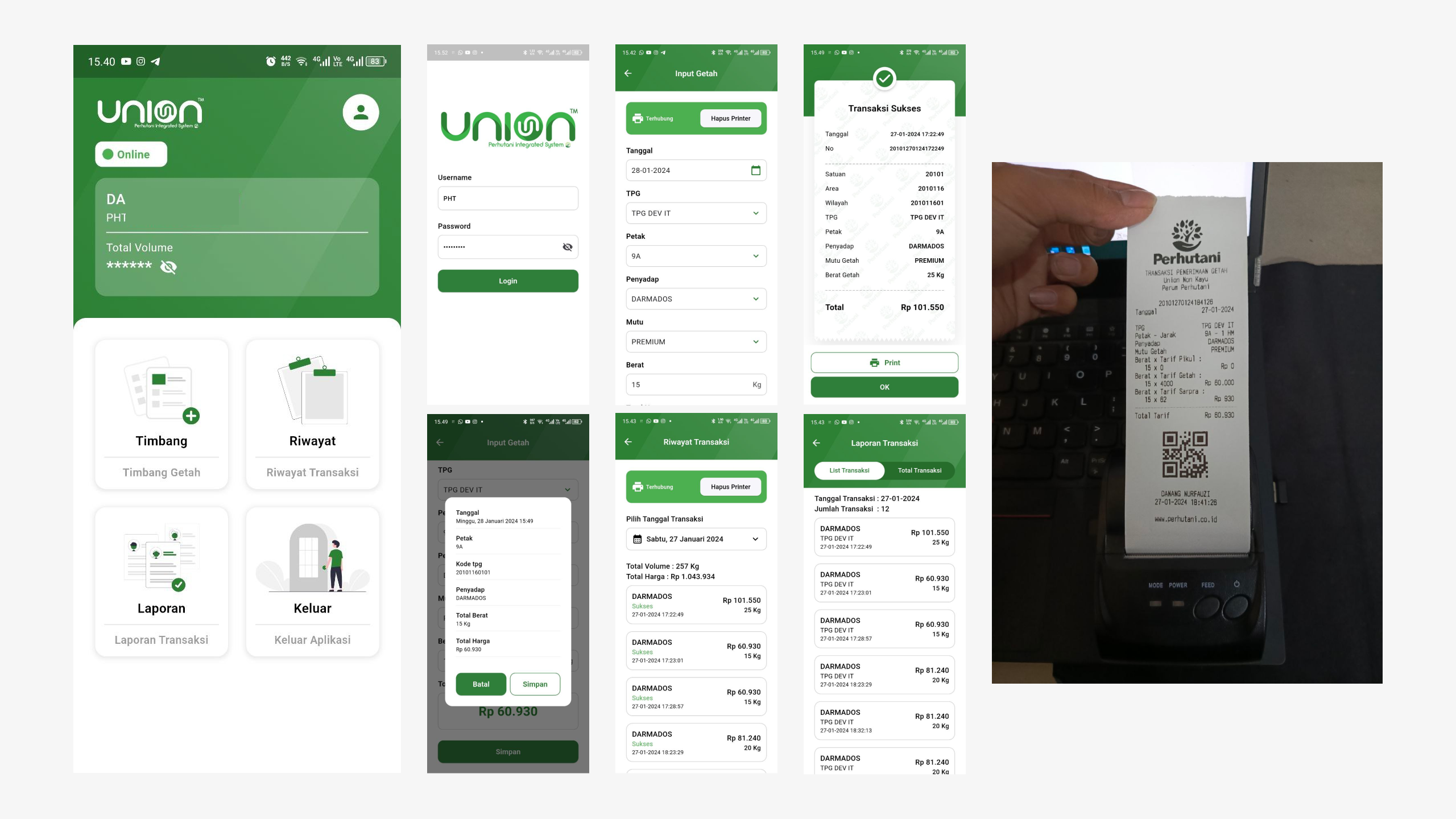 - User menginputkan jenis getah, harga dan lain-lain, lalu user bisa simpan transaksi tersebut atau print struk nya, menggunakan thermal printer yang sudah terintegrasi di aplikasi.